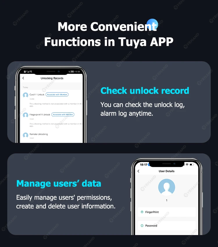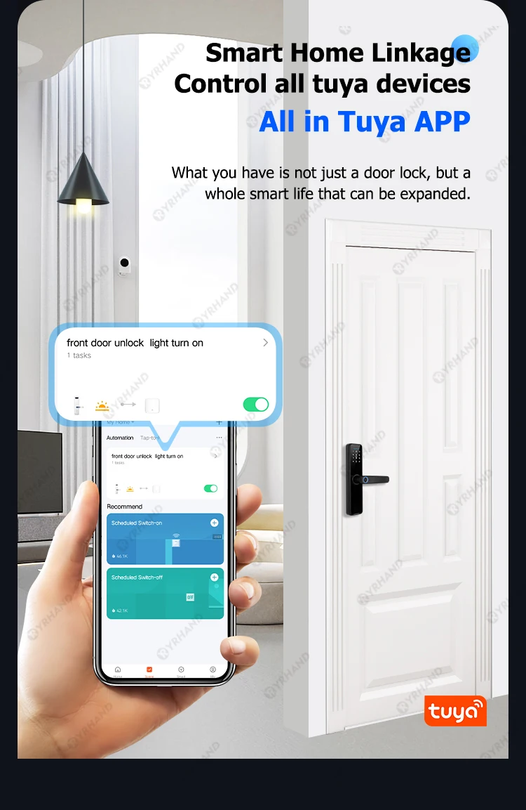 5 méthodes de déverrouillage: application Tuya/empreinte digitale/mot de passe/carte à puce/clé/déverrouillage de la dragonne