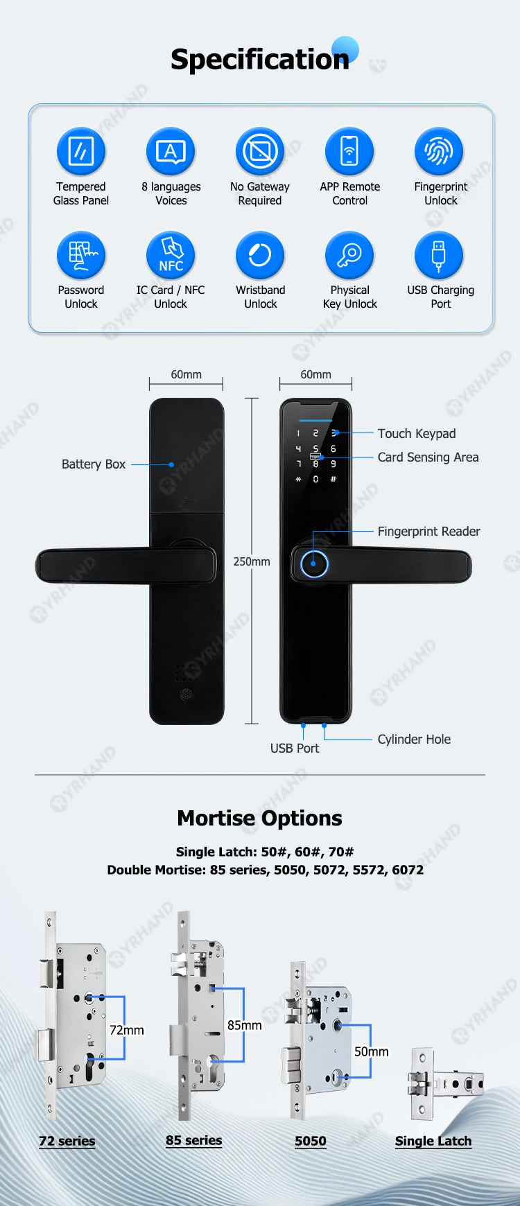 24 + tailles de serrure à mortaise disponibles